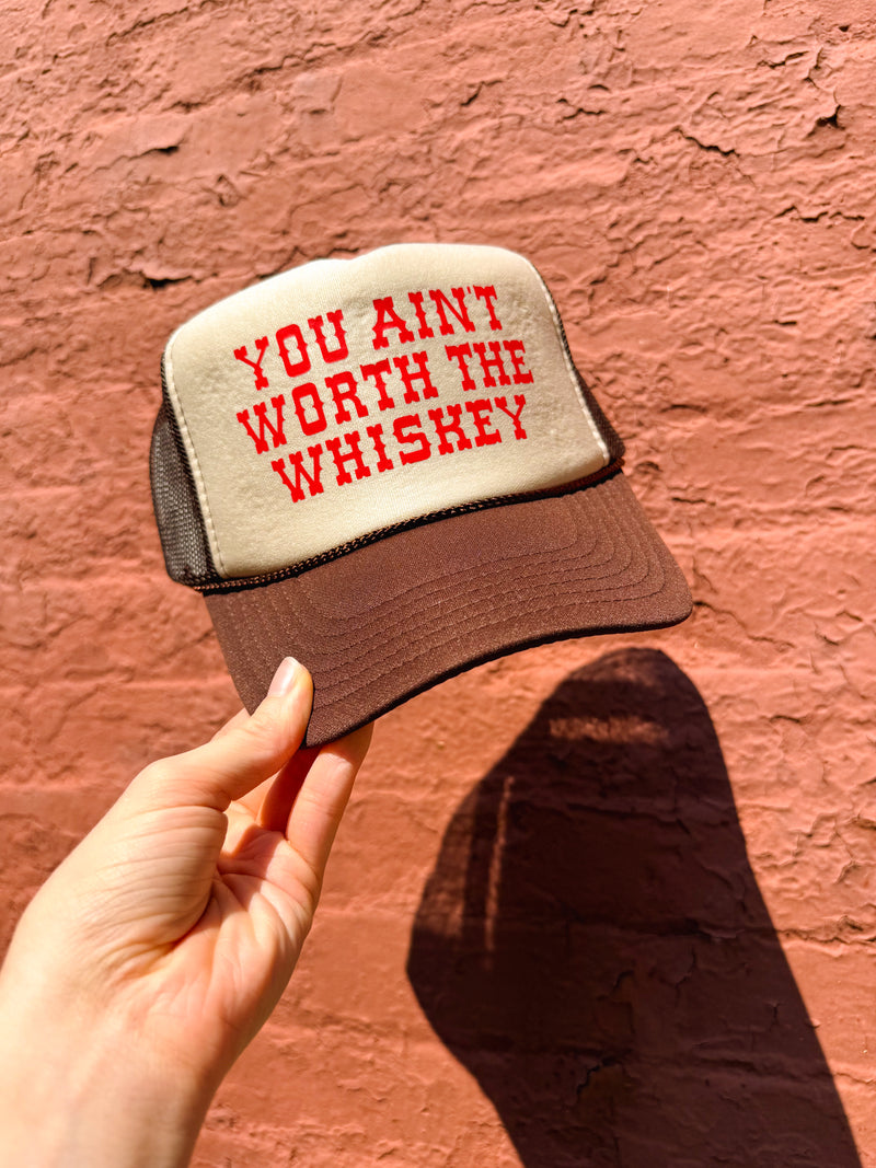 YOU AIN’T WORTH THE WHISKEY Trucker Hat - cream/brown