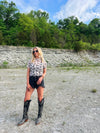 This mesh top is the perfect statement top that can be worn with a tank or bralette underneath...
