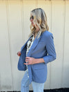 This cornflower blue blazer offers a perfect blend of modern elegance and classic style. The blazer features a...